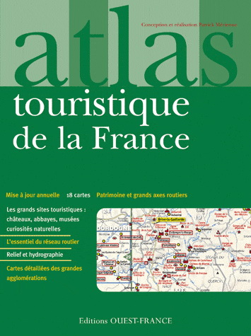Cet atlas conçu par double-page permet de chercher et de localiser les grands sites touristiques français : monuments, châteaux, musées, abbayes... et les principales curiosités naturelles. L'échelle choisie permet de couvrir plusieurs départements par double-page. L'essentiel de la trame du réseau routier est représenté et permet une navigation routière ou une programmation d'itinéraire aisée. La continuité de la lecture est facilitée grâce au recouvrement des cartes. Les pictogrammes permettent une lecture rapide et ciblée (les abbayes, les stations de ski...)