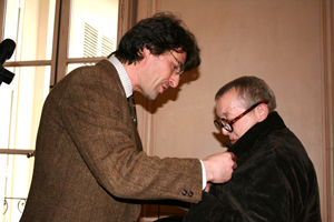 J'ai le très grand plaisir de vous annoncer que, au titre d'une promotion exceptionnelle, je viens de vous décerner le grade de chevalier dans l'ordre des Arts et des Lettres. Je vous adresse mes sincères félicitations.